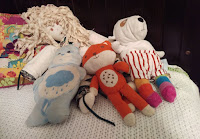 I’ve managed to whack out these two pairs of socks - one for Youngling and one for the youngling of a friend with the leftovers - the smaller pair ended up being just a little bit too short (he’s 2, apparently they grow like weeds still), so they now have become an accessory to one of his stuffies. The photo of the larger pair was arranged by Youngling. She had a great time sorting out the backdrop. Might need to employ her to help take more photos for the blog in the future!